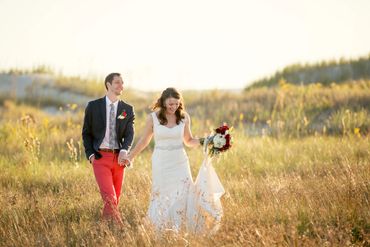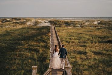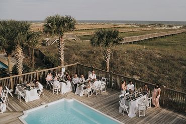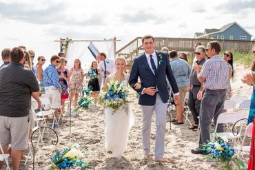 Danielle and Ian live in Minnesota and planned a destination wedding in Holden Beach, North Carolina. Their friends and family joined them, some even driving here, for a long weekend celebration. Even their dog came along!